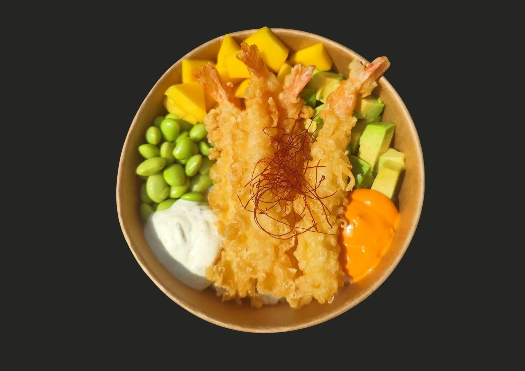 Die Bowl Shrimps ist eine aufregende Komposition aus frischen Zutaten, die Lust auf mehr macht. Reis bildet die Grundlage, gekrönt von saftigen Shrimps, Edamame und Avocado. Fruchtige Mango sorgt für eine süsse Note, während ein würziges Tzatziki und eine scharfe Cocktailsauce das Geschmackserlebnis perfekt abrunden. Ein Highlight für alle, die Genuss und Abenteuer lieben.